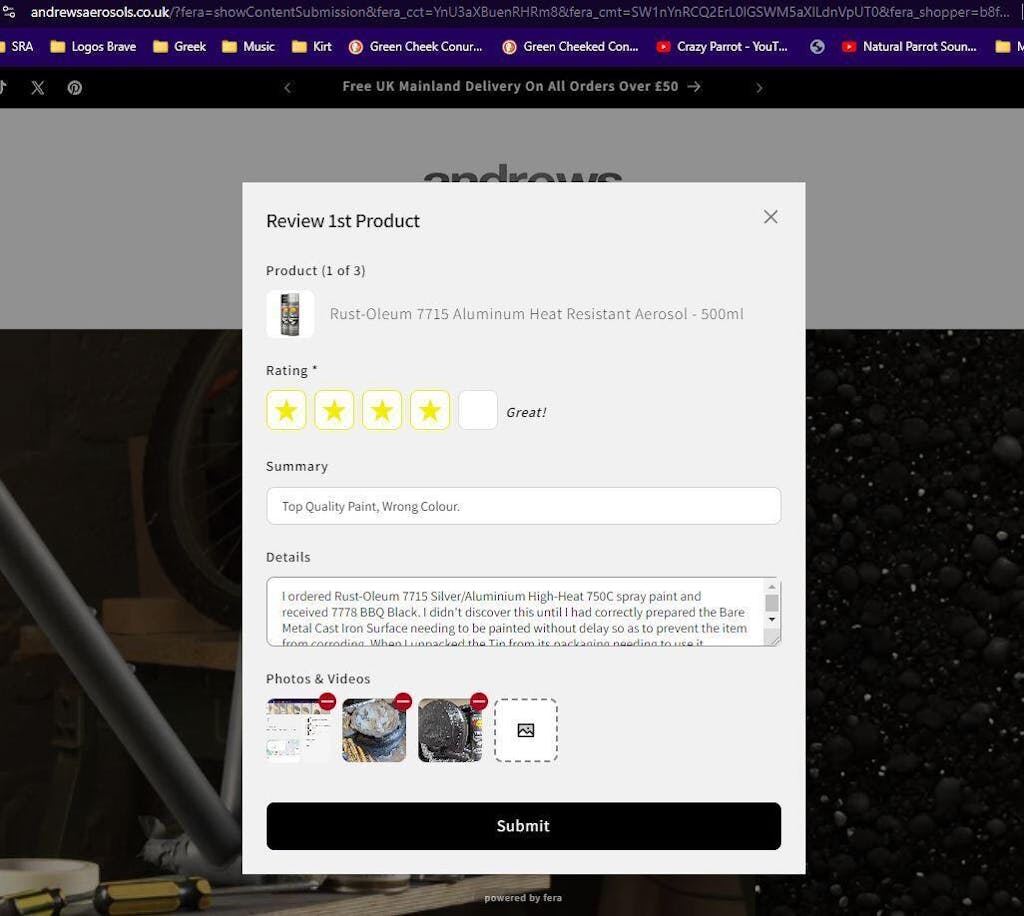 If your order is damaged or delayed, please let us know as soon as possible. We are not always informed automatically by the courier, so your input is essential.